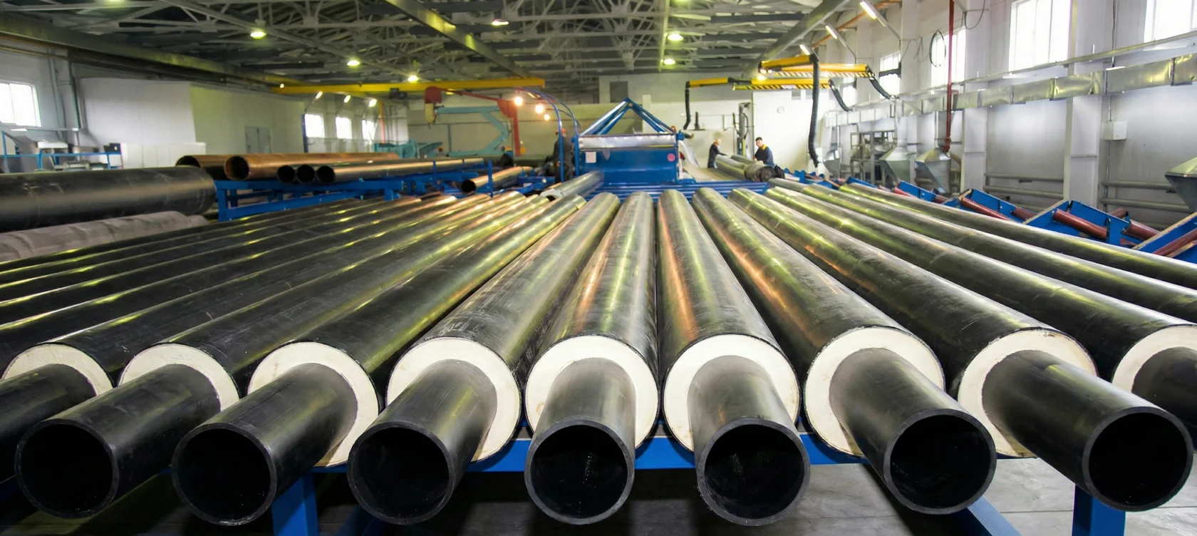 Система оптимизирована для производства предизолированных труб и фасонных изделий («скорлупа»).